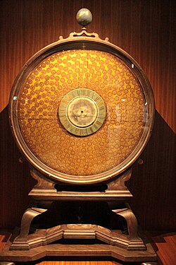 World time clock, 2.5 m high. Made in Dresden 1690. Technical Instrument Museum, Dresden